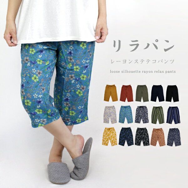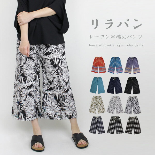 《 メール便 》【在庫限り】夏柄 リラパン レーヨン ガウチョ リラックス ルーズパンツ 半端丈 エスニック アジアン ペイズリー リーフ マリン ストライプ 総柄 ゆったり 母の日 プレゼント 夏 ルームウエア 快適 部屋着 ステテコ お洒落 もんぺ