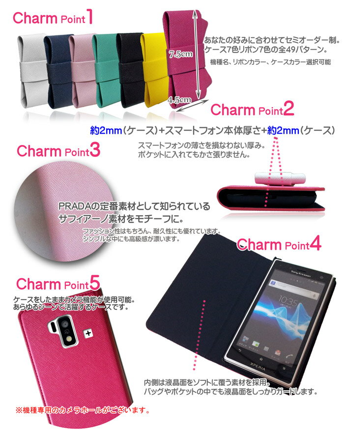ケースカラー7色、リボンカラー10色よりお好みのケースをセミオーダーにて、1つ1つハンドメイドにて作成致します。