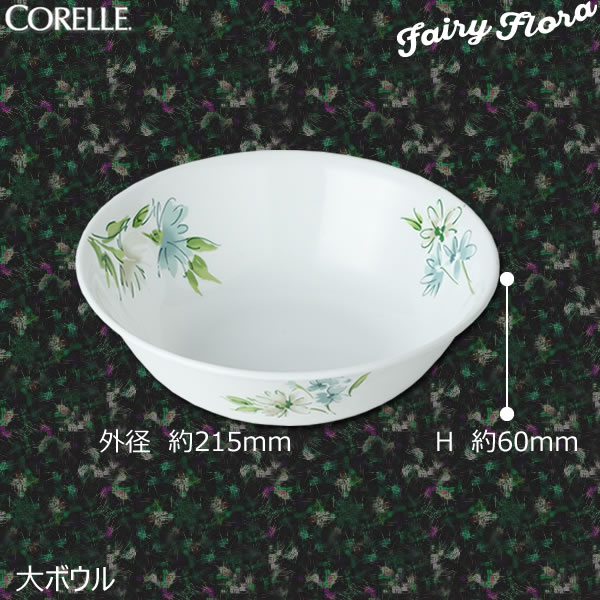 CORELLE Fairy Flora/コレール フェアリーフローラCP-9486 大ボウル 仕様 材質:全面積層強化耐熱ガラス サイズ:約外径215×高さ60mm 重量:約311g 原産国:アメリカ ※WEB上のため、実物と画像とで色など、多少違う点がございますのでご理解ください。