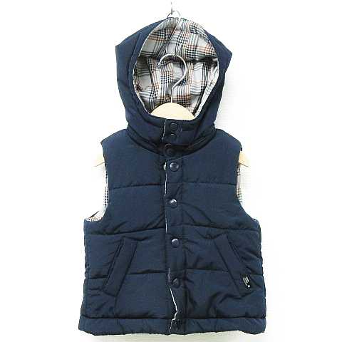 【中古】未使用品 アプレレクール alc 中綿ベスト ジャケット アウター ノースリーブ リバーシブル チェック 無地 ネイビー グレー オレンジ 90 子供服 キッズ 【ベクトル 古着】 200307 ベクトルプレミアム店
